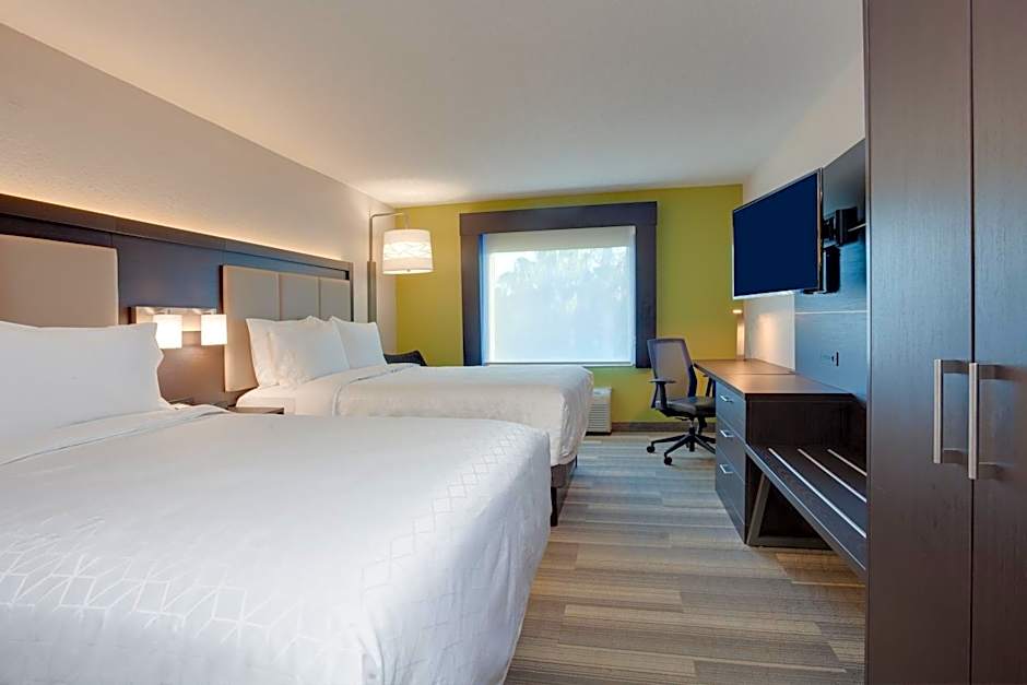 This suite features a 32-inch flat-screen TV, a microwave, a small refrigerator and a separate seating area with a sofa bed.